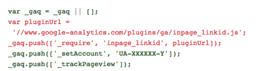 - Modificación del código para ga.js. Tendremos que agregar el código que aparece en rojo: