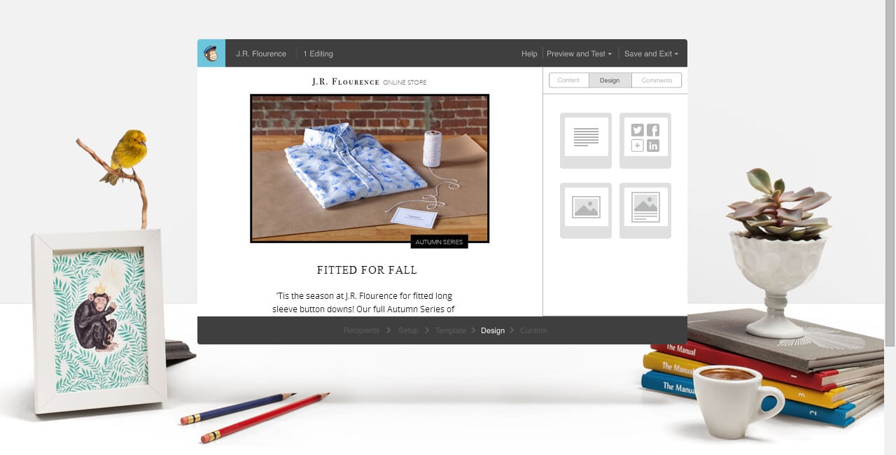Partiendo de esta plantilla se configurarán las diferentes campañas, quitando o modificando módulos según convenga. De esta forma todos los emails de la marca seguirán una misma línea e identidad visual, independientemente de quien entre a la cuenta de Mailchimp a editar.