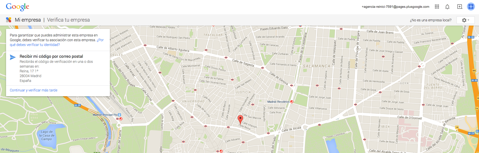 5. Finally, we must verify the identity of our company so that Google allows us to manage the corporate profiles associated with the company in question and thus avoid possible fraud. Ideally, you should receive the verification code by mail, which takes between one and two weeks to arrive. Once received, we will have to access our Google My Business profile and enter the code indicated to us.